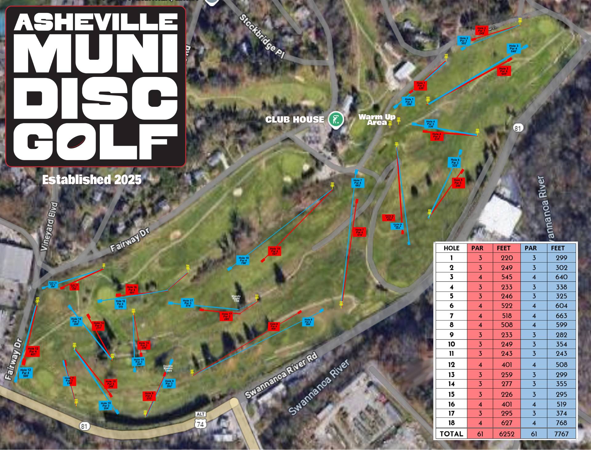 The Asheville Municipal Golf Course Pro Shop will serve as the check-in and concessions area for the disc golf course. Along with the City of Asheville, the course is proud to welcome New Belgium Brewing Company, the WNC Nature Center as local course partners.